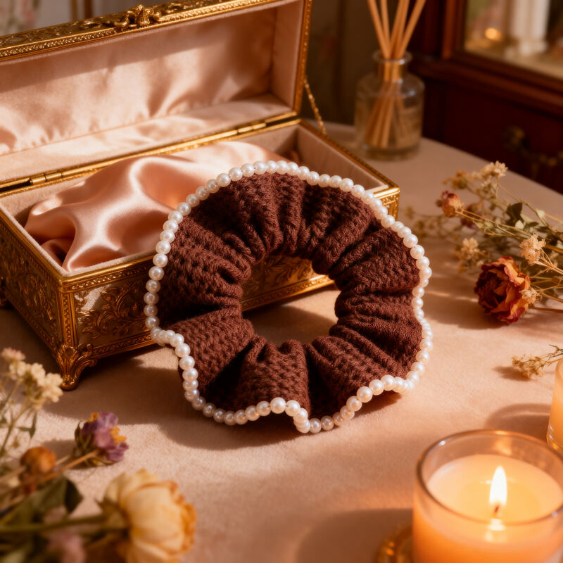 गर्म बिक्री सामान थोक डिजाइनर जैविक कपास Scrunchies सफेद मोती बाल Scrunchy महिलाओं के लिए लड़कियों के लिए