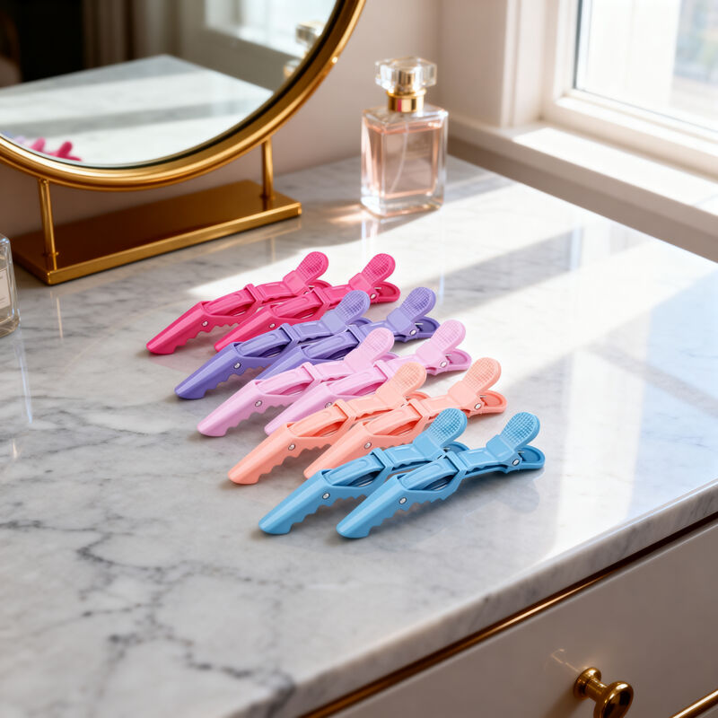 मजबूत गैर-स्लिप पकड़ःबनावट वाले जबड़े और टिकाऊ स्प्रिंग तंत्र बालों को बिना फिसले सुरक्षित रूप से जगह पर रखते हैं